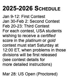Is USACO 2025-2026 season schedule released?